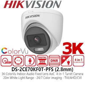 Hikvision DS-2CE70KF0T-PFS | 3K 24/7 ColorVu Audio Fixed Mini Bullet Camera 2.8mm